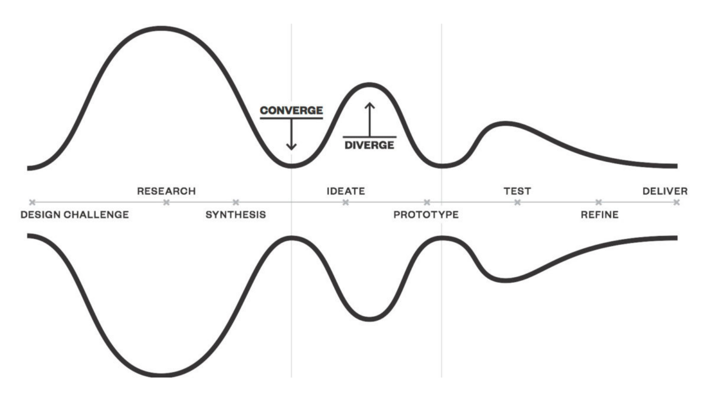 Traditional design process, pioneered by IDEO and the Stanford d.school.