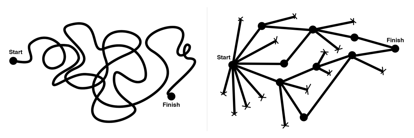 Designers use a similar process [2]. Mature designer have a structured way of thinking where he/she can visualize the different branches of exploration, forming a tree structure and with experience a mature designer has the discipline to know which branches to kill, and which to pursue further.