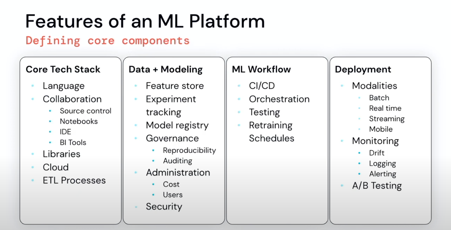 - In deployment (via containers or spark applications, for example), governance becomes paramount, especially in regulated environments. Data lineage, data versioning, model versioning, model explainability, model monitoring are all front and center.