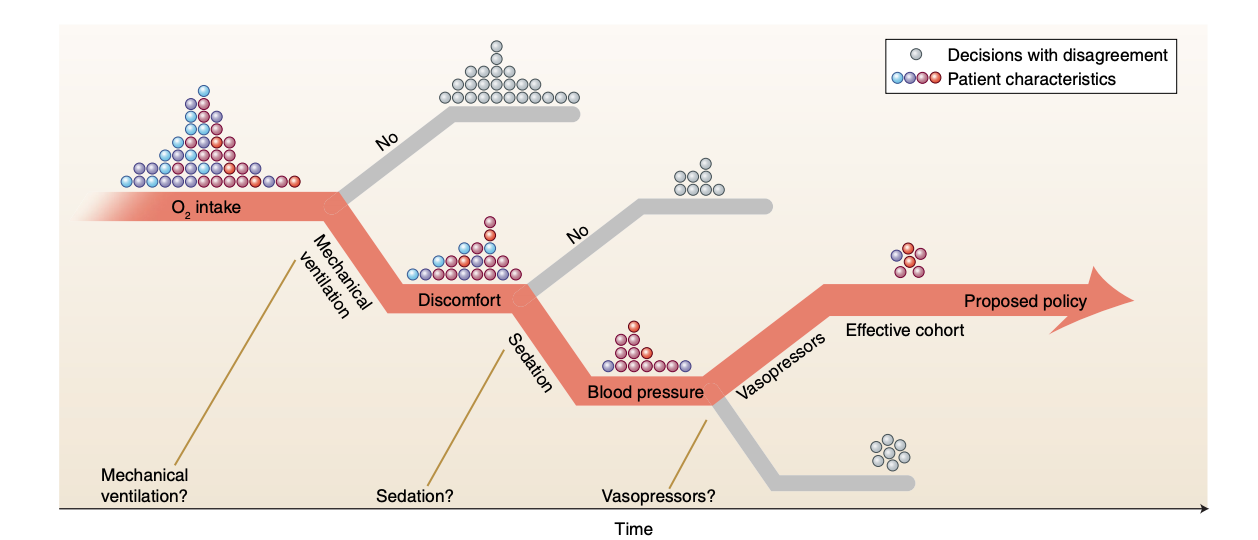 We define an optimal policy as a mapping from the patient's history H (history of their measurements and treatments to date) to the next treatment decision in a way that leads to optimal outcomes in the long run. In this step, using off-policy RL algorithms, we find an optimal policy that recommends the optimal treatment path.