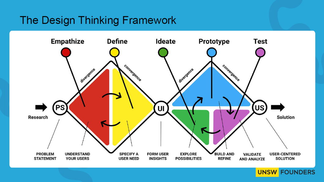 - Deliver: Finally, you narrow down and refine your solutions, creating prototypes, testing them, and iterating until you arrive at something ready to launch.