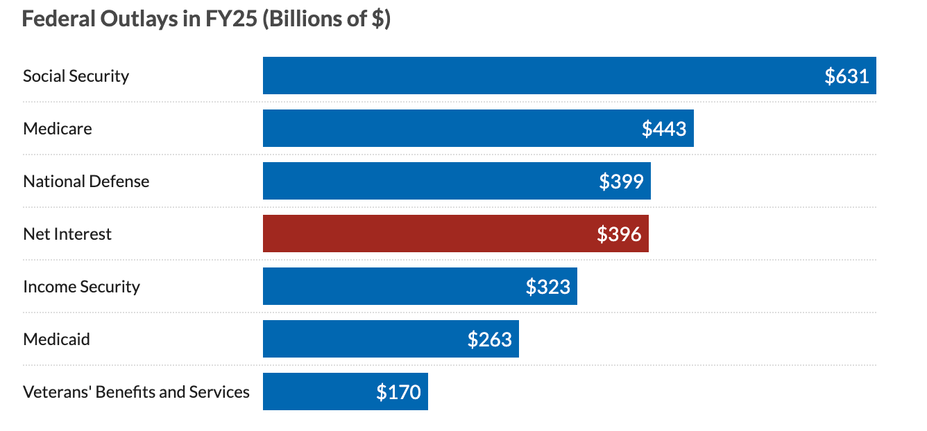 This has now changed: interest payments are the fastest-growing part of the federal budget due to rising rates.